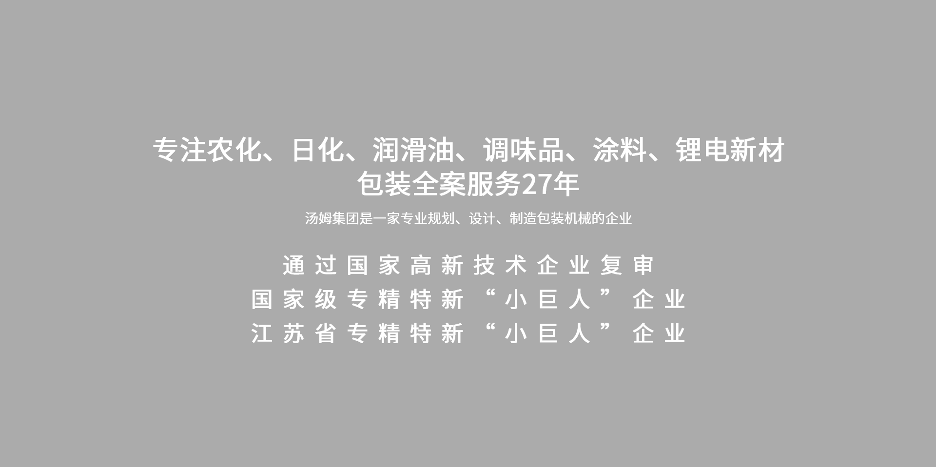 江蘇湯姆集團(tuán)在液態(tài)、粉體、固體、顆粒等包裝領(lǐng)域的專長(zhǎng)保證了工藝設(shè)計(jì)與整線工程的完美結(jié)合。建立了農(nóng)化、石化、調(diào)味品、日化、涂料等不同包裝領(lǐng)域的工藝設(shè)計(jì)體系,根據(jù)不同的包裝形式及具體的工廠布局,均可提供專為您項(xiàng)目而量身定制的交鑰匙解決方案 。